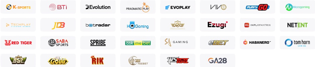 - Nhà phát hành game: AE Casino, Sexy Gaming, Asia Gaming, IBC, Evolution Gaming… cung cấp hơn 1.000 trò chơi đa dạng từ slot, casino, game bài, thể thao ảo.
